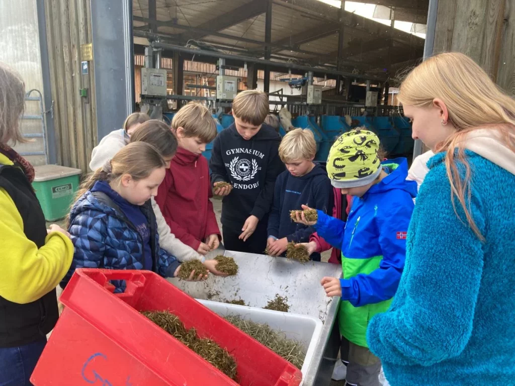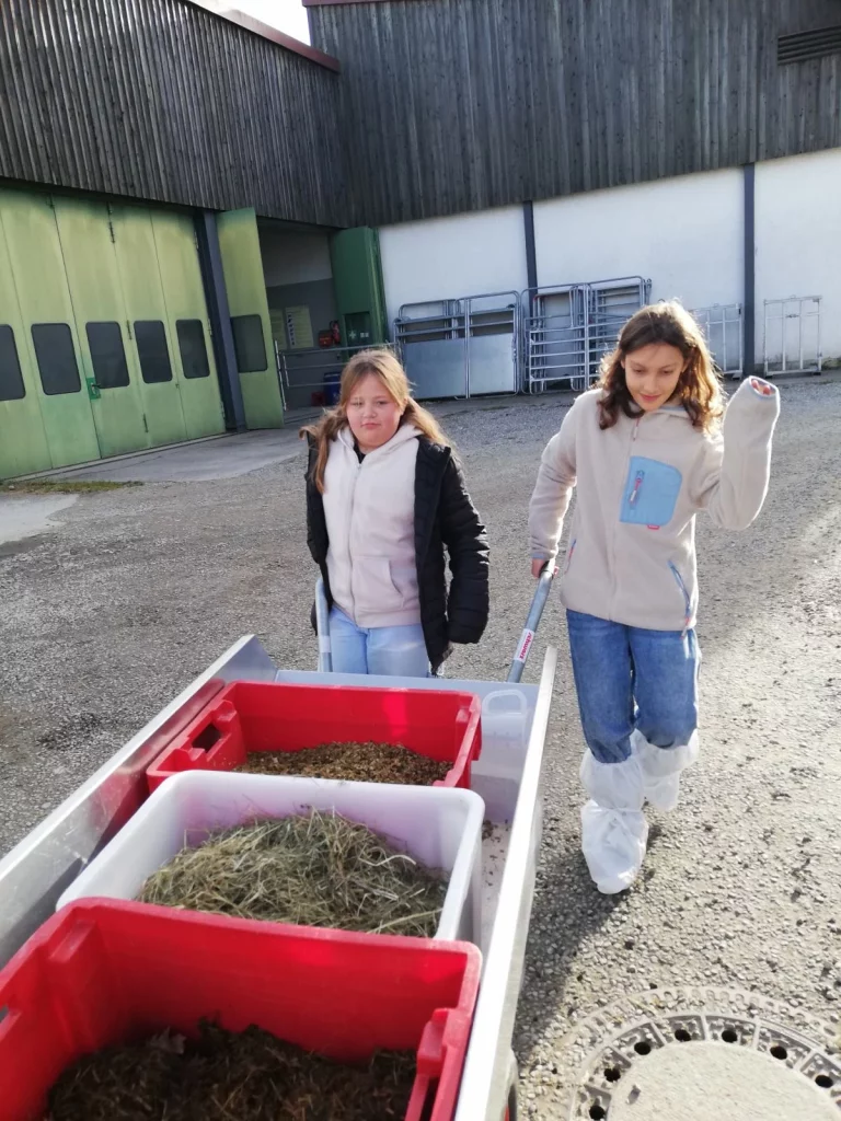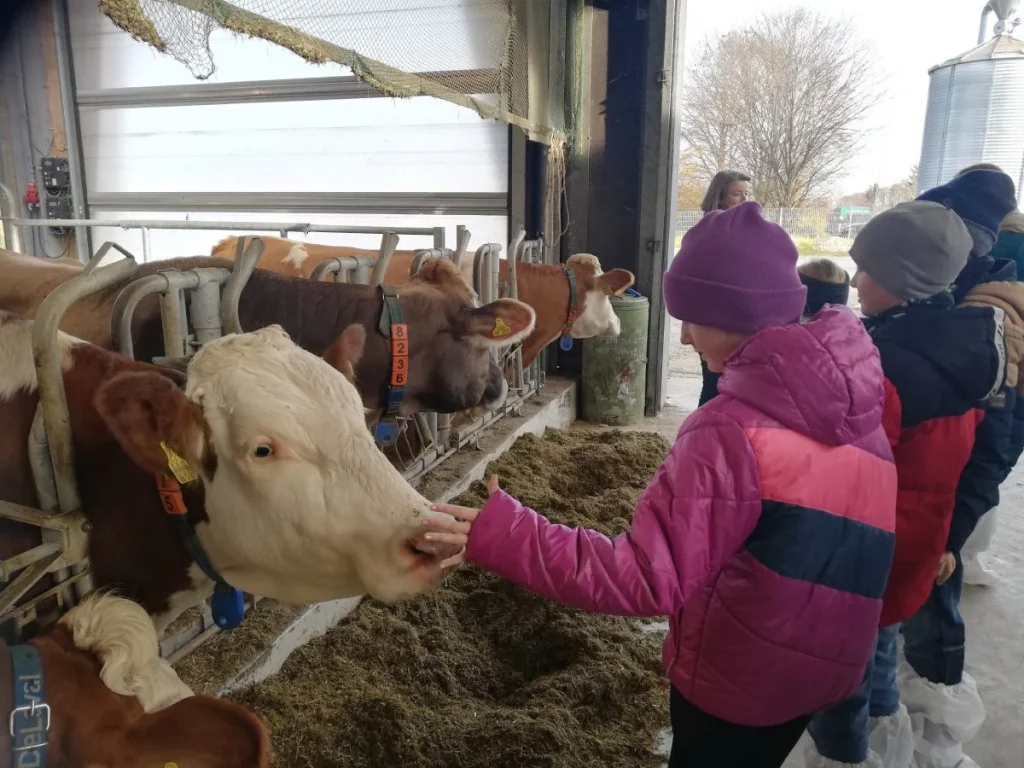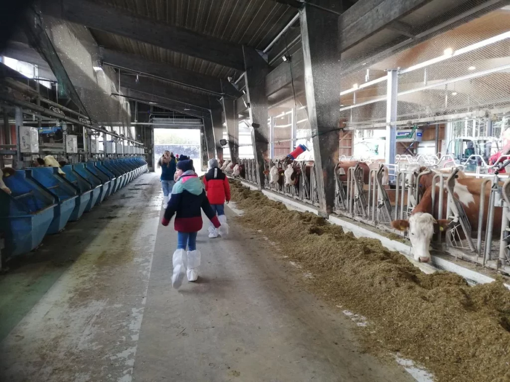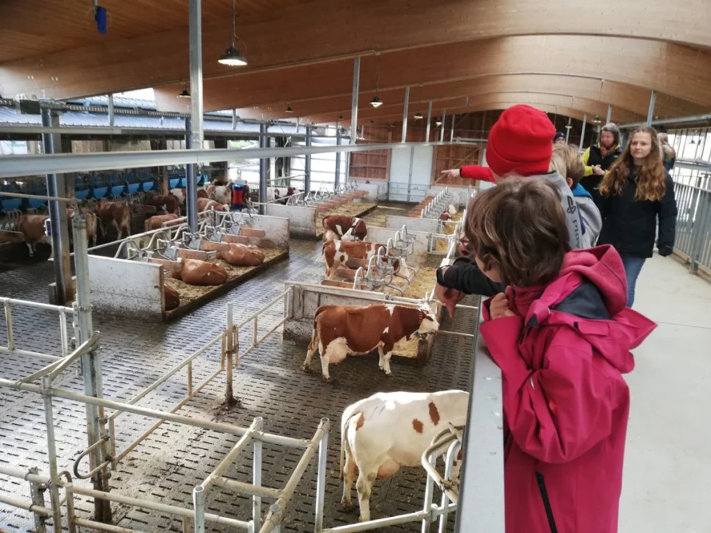 Passend zum Thema „Das Rind“, das gerade im Biologie-Unterricht bearbeitet wird, dürfte die 5.Klasse gemeinsam mit Frau Hofmann und Frau Sandmaier einen Besuch zum LAZBW Aulendorf in den großen Kuhstall machen. Dort lernte die Klasse, wie viel Milch eine Kuh gibt und wie sie gemolken wird. Zudem kamen die Kinder im Stall in direkten Kontakt mit den Kühen und einige Mutige durften die Kühe sogar streicheln und füttern. Zuletzt untersuchten die Schülerinnen und Schüler, welches Futter eine Kuh frisst und wie dieses Futter von der Kuh verdaut wird. Am Ende gab es eine leckere Kostprobe der frischen Milch.