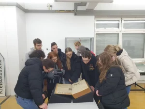 Die Schülerinnen und Schüler unserer Klassen 11 und 12 haben eine Exkursion ins Kreisarchiv Ravensburg unternommen und am Workshop „Stimmt das denn?“ teilgenommen. In Zeiten