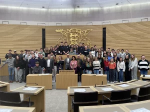 Unsere Klasse 9 besuchte mit ihrem Gemeinschaftskundelehrer Dr. Schönwald den Stuttgarter Landtag. In einem ersten Teil wurde den Jugendlichen Input gegeben, indem die wichtigsten Aufgaben