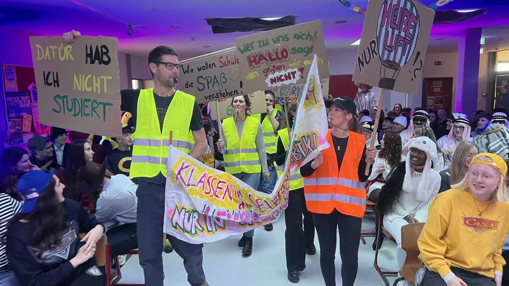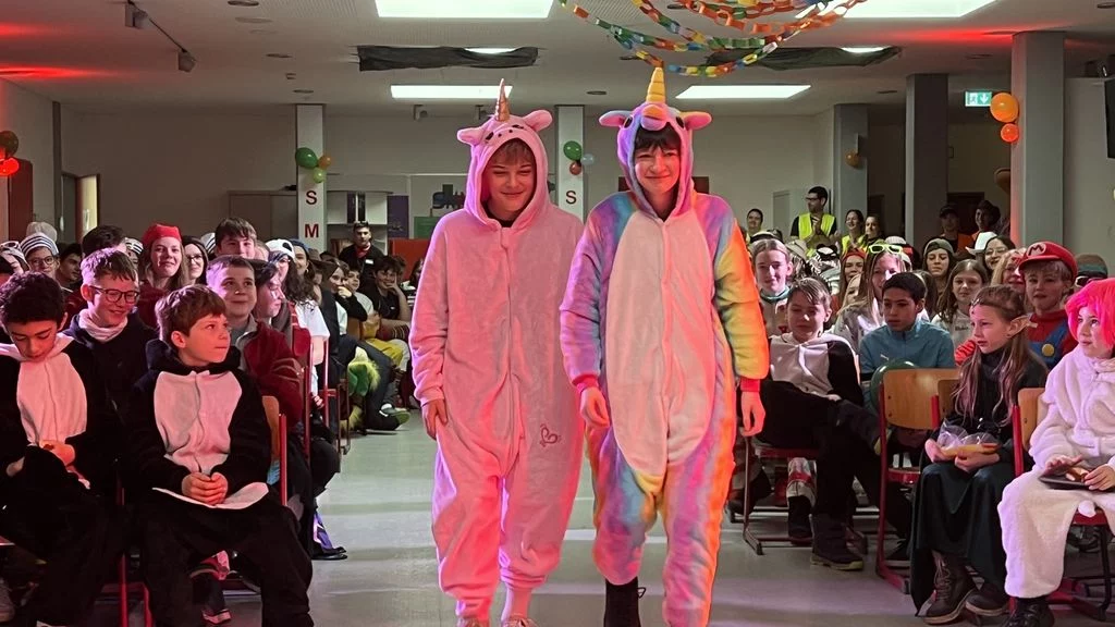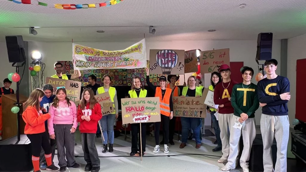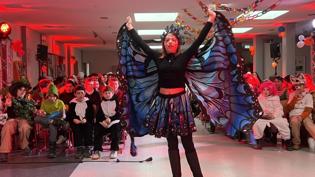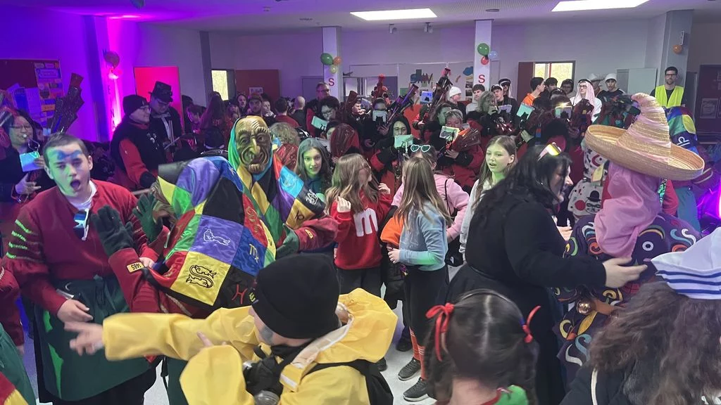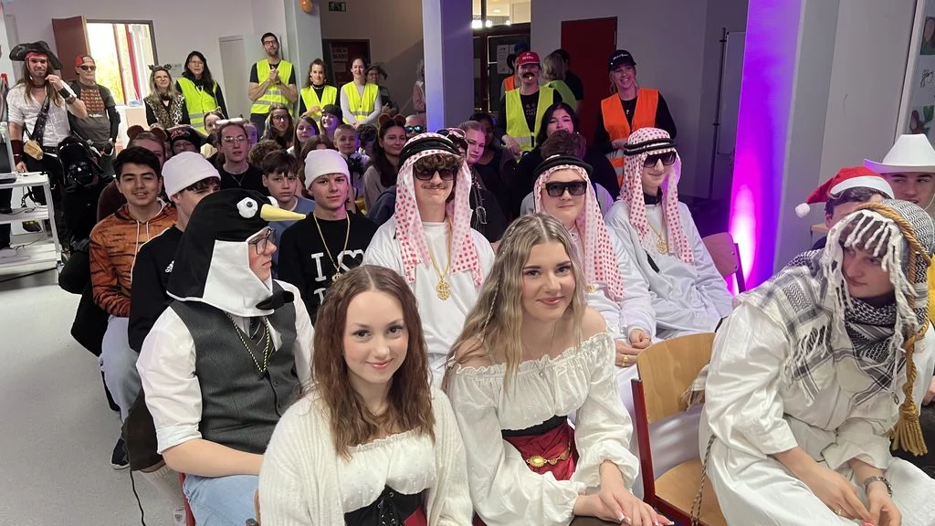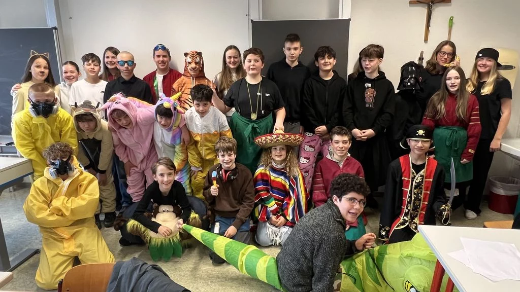 Heute feierten wir den Start in die Fasnetsferien mit einem bunten Programm. In der ersten Stunde gestalteten die einzelnen Klassen individuelle Feiern mit ihren Klassenlehrkräften, bei denen die verkleideten Schülerinnen und Schüler schon ganz gut in närrische Stimmung kamen. Anschließend organisierte die SMV eine gemeinsame Feier im Großraum der Ebene 5. Das kurzweilige Programm begeisterte mit Spielen, kreativen Kostümprämierungen und einer humorvollen Büttenrede von Herrn Haas, der die Lachmuskeln des Publikums forderte. Gegen 10:20 Uhr erfolgte der Höhepunkt: Die Aulendorfer Narrenzunft befreite unsere Schülerinnen und Schüler aus dem Schulgebäude. Im gemeinsamen Zug ging es zum Schlossplatz, wo das traditionelle Narrenbaumstellen stattfand. Mit dem letzten Gong um 11:11 Uhr starteten alle in die Fasnetsferien.