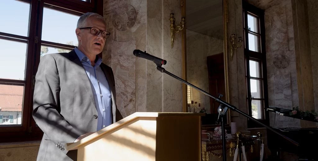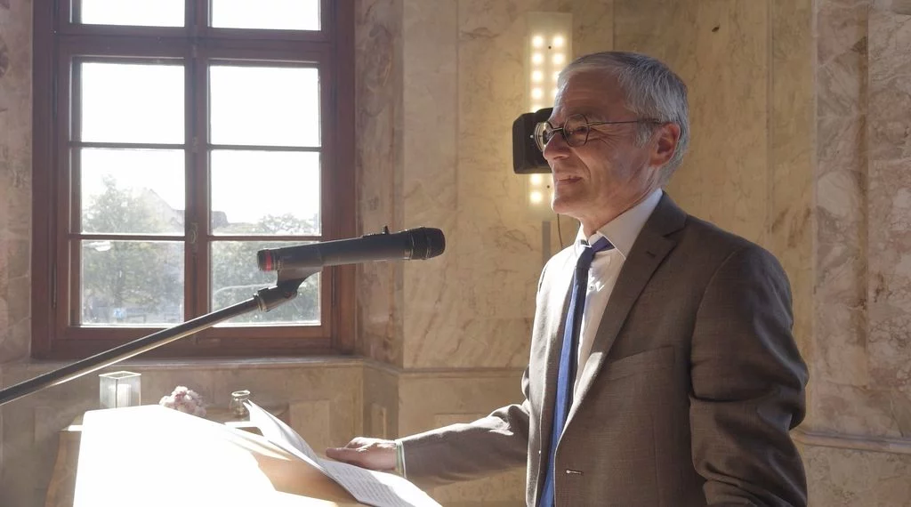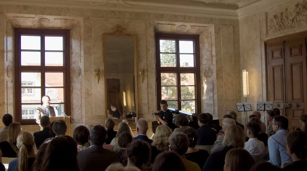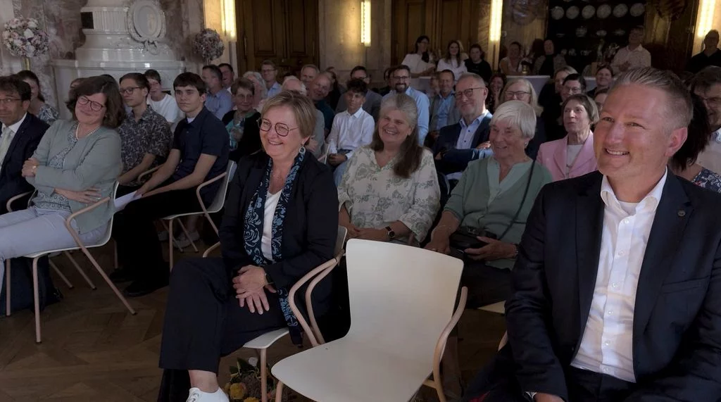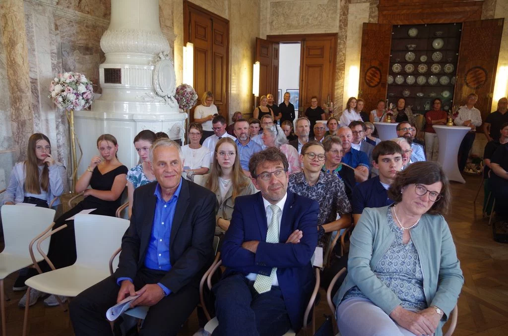 Zu Beginn des neuen Schuljahres fand im Marmorsaal des Aulendorfer Schlosses eine Feierstunde statt, bei der unser bisheriger kommissarischer Schulleiter, Dr. Matthias Schönwald, nun auch offiziell in sein neues Amt eingeführt wurde. Viele Gäste waren gekommen: Familienangehörige, Vertreterinnen und Vertreter des Regierungspräsidiums Tübingen und der Stadt Aulendorf, der umliegenden Schulen, der Kirchen sowie der Presse, außerdem Kolleginnen und Kollegen, Eltern und natürlich auch Schülerinnen und Schüler sowie weitere Freunde und Förderer unserer Schule. Die Grußworte sprachen Frau Dr. Astrid Volmer vom Regierungspräsidium Tübingen, Bürgermeister Matthias Burth, Herr Michael Bader für den Personalrat des Kollegiums und Herr Andreas Greiner als Vorsitzender des Elternbeirats. Für den musikalischen Rahmen sorgte unser Musiklehrer Selin Schönbeck, unterstützt von den Schülerinnen Carolin und Mara aus der Klasse 8. In seiner abschließenden Rede betonte Herr Schönwald, dass er sich freue, nach seinen bisherigen Rollen als stellvertretender und kommissarischer Leiter, nun auch offiziell als Schulleiter am Gymnasium Aulendorf angekommen zu sein. Der Zahl Drei blieb er treu, indem er drei Begriffe als Leitmotive seiner künftigen Amtszeit hervorhob: Respekt, Gemeinsinn und Offenheit. Den feierlichen Abschluss bildete ein geselliger Empfang bei Getränken und kleinen Leckereien. Der Film stammt von unserem Schüler Felix Weinfurter (www.felix-film-studios.de). Vielen Dank dafür!