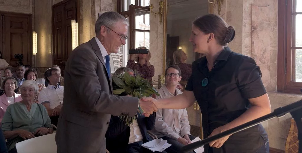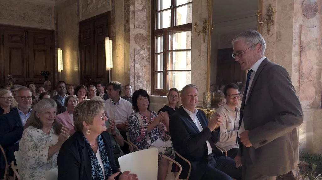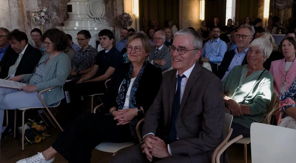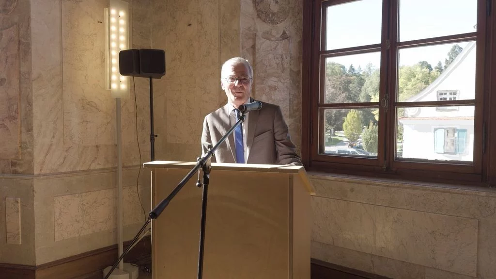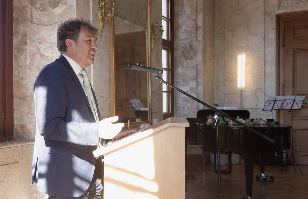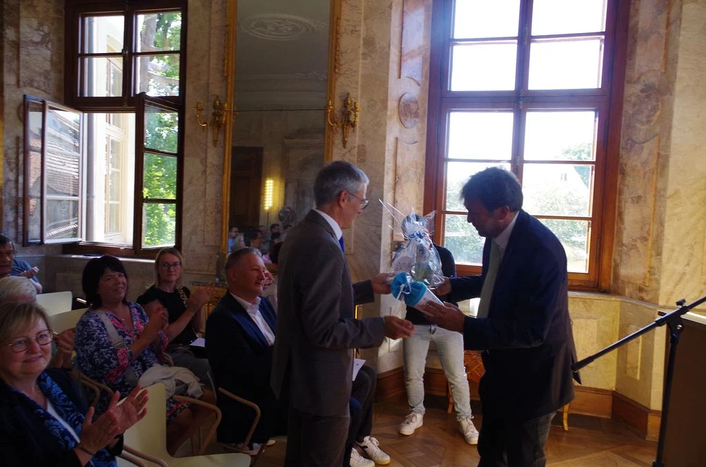 Zu Beginn des neuen Schuljahres fand im Marmorsaal des Aulendorfer Schlosses eine Feierstunde statt, bei der unser bisheriger kommissarischer Schulleiter, Dr. Matthias Schönwald, nun auch offiziell in sein neues Amt eingeführt wurde. Viele Gäste waren gekommen: Familienangehörige, Vertreterinnen und Vertreter des Regierungspräsidiums Tübingen und der Stadt Aulendorf, der umliegenden Schulen, der Kirchen sowie der Presse, außerdem Kolleginnen und Kollegen, Eltern und natürlich auch Schülerinnen und Schüler sowie weitere Freunde und Förderer unserer Schule. Die Grußworte sprachen Frau Dr. Astrid Volmer vom Regierungspräsidium Tübingen, Bürgermeister Matthias Burth, Herr Michael Bader für den Personalrat des Kollegiums und Herr Andreas Greiner als Vorsitzender des Elternbeirats. Für den musikalischen Rahmen sorgte unser Musiklehrer Selin Schönbeck, unterstützt von den Schülerinnen Carolin und Mara aus der Klasse 8. In seiner abschließenden Rede betonte Herr Schönwald, dass er sich freue, nach seinen bisherigen Rollen als stellvertretender und kommissarischer Leiter, nun auch offiziell als Schulleiter am Gymnasium Aulendorf angekommen zu sein. Der Zahl Drei blieb er treu, indem er drei Begriffe als Leitmotive seiner künftigen Amtszeit hervorhob: Respekt, Gemeinsinn und Offenheit. Den feierlichen Abschluss bildete ein geselliger Empfang bei Getränken und kleinen Leckereien. Der Film stammt von unserem Schüler Felix Weinfurter (www.felix-film-studios.de). Vielen Dank dafür!