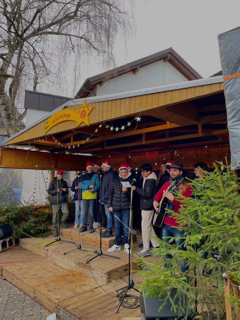 Letzten Sonntag performte die Klasse 8 bei den Aulendorfer Adventstagen das Lied Rudolph, the red noised reindeer in gleich drei unterschiedlichen Sprachen – Deutsch, Englisch und Französisch. Maxim Stoll und Taimallah Akmisha übernahmen dabei jeweils einen Solopart und überzeugten mit ihren Stimmen.