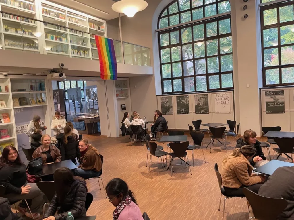 Unterricht fernab des Klassenzimmers konnten 27 Schülerinnen und Schüler der Leistungsfächer Kunst und Deutsch erleben. Für zwei Tage ging es nach München, wo sich die Gruppe mit den literarischen und künstlerischen Umbrüchen auf dem Weg zur Moderne beschäftigte. Der erste Tag begann mit dem Besuch der Ausstellung „Literarisches München zur Zeit von Thomas Mann“ in der Monacensia, dem Münchener Literaturarchiv. Dort konnten die Schüler auch den Bibliotheksbestand sichten und die wechselvolle Geschichte des im Stadtteil Neuhausen gelegenen Gebäudes von der Prinzregenten- über die NS-Zeit bis heute kennenlernen. Am Nachmittag stand Kunst auf dem Programm. Die Gruppe teilte sich nach abiturrelevanten Schwerpunktthemen. Die Jahrgangsstufe 1 besuchte die Pinakothek der Moderne und informierte sich in einer Raumführung über die Architektur des Gebäudes und Künstler wie Francis Bacon und Joseph Beyus. Ziel der Jahrgangsstufe 2 war die Alte Pinakothek. Betrachtet wurden ausgewählte Stillleben und Landschaftsbilder vom Barock bis hin zum Impressionismus, anhand derer die Schüler die Erneuerung traditioneller Gestaltungsmethoden in der Malerei studierten. Abends ging es weiter nach Schwabing und in den Kinofilm „Taxi Teheran“, der anlässlich des Interkult Festivals gezeigt wurde. Eine Einführung veranschaulichte die steinige Entwicklung des Kinos im Iran und die Lage der dort arbeitenden Filmkünstler. Der zweite Tag stand nochmal im Zeichen der Malerei. Die Führung im Lehnbachhaus bezog sich auf Gabriele Münter, Mitbegründerin der Künstlerbewegung des „Blauen Reiter“ und vermittelte den Weg der Gruppe in den Expressionismus. Den restlichen Tag hatten die Schüler für eigene Entdeckungstouren zur Verfügung, bevor es am späten Nachmittag wieder zurück nach Aulendorf ging.