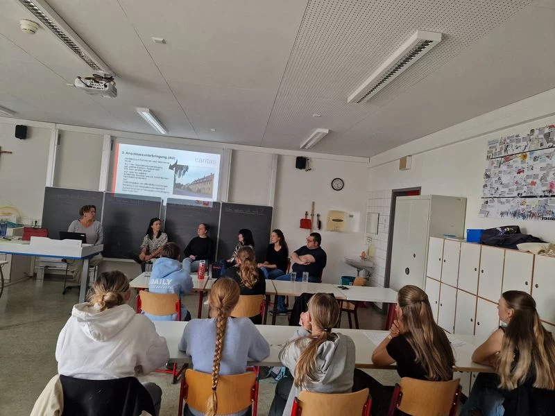 Fachlich begleitet wurde der Projekttag durch das Team des Hofgarten-Treffs, das zentrale Informationen zum Asylsystem in Deutschland vermittelte. Frau Glaser, Integrationsbeauftragte der Stadt Aulendorf, veranschaulichte die theoretischen Inhalte mit konkreten Praxisbeispielen aus der Kommune. Sie zeigte auf, wie Integration vor Ort gelingen kann – sei es durch Sprachförderung, Wohnungsvermittlung oder ehrenamtlichem Engagement.