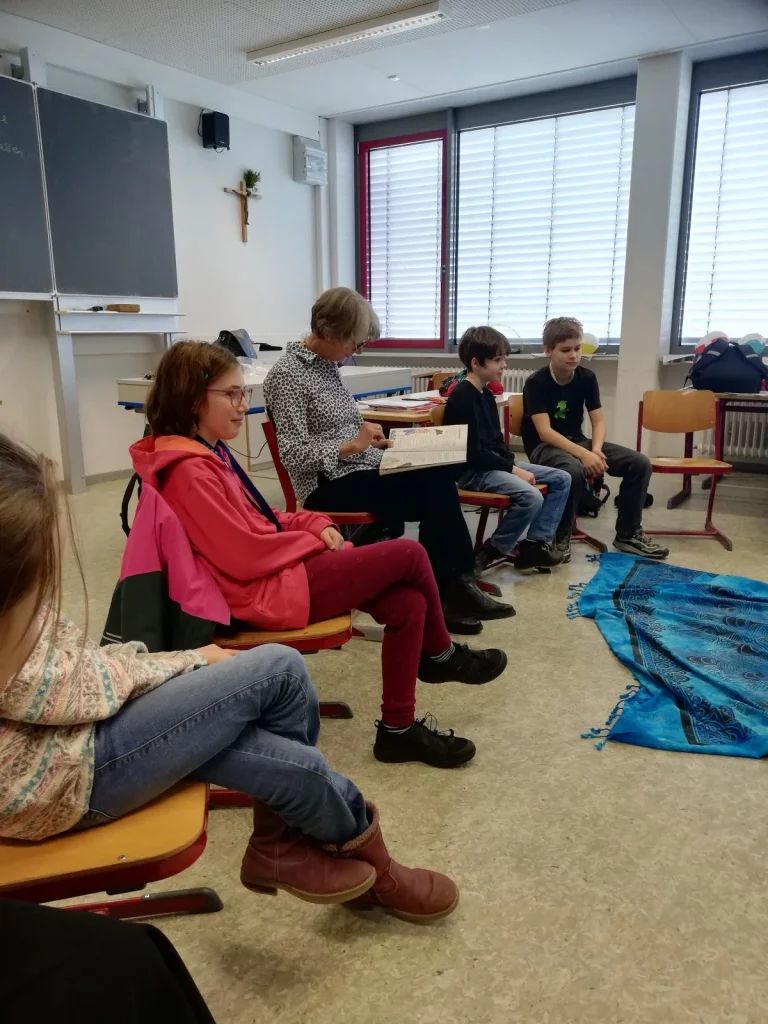 Diese Woche erlebte die Klasse 5 ein besonderes Highlight während der Differenzierungsstunde im Fach Deutsch. Frau Krieg, eine „Oma for Future“ aus Aulendorf, las den Kindern eine Schulstunde lang aus dem Buch „Oma, erzähl mir von der Zukunft“ vor.