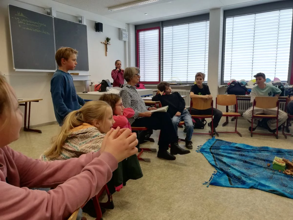 Diese Woche erlebte die Klasse 5 ein besonderes Highlight während der Differenzierungsstunde im Fach Deutsch. Frau Krieg, eine „Oma for Future“ aus Aulendorf, las den Kindern eine Schulstunde lang aus dem Buch „Oma, erzähl mir von der Zukunft“ vor.